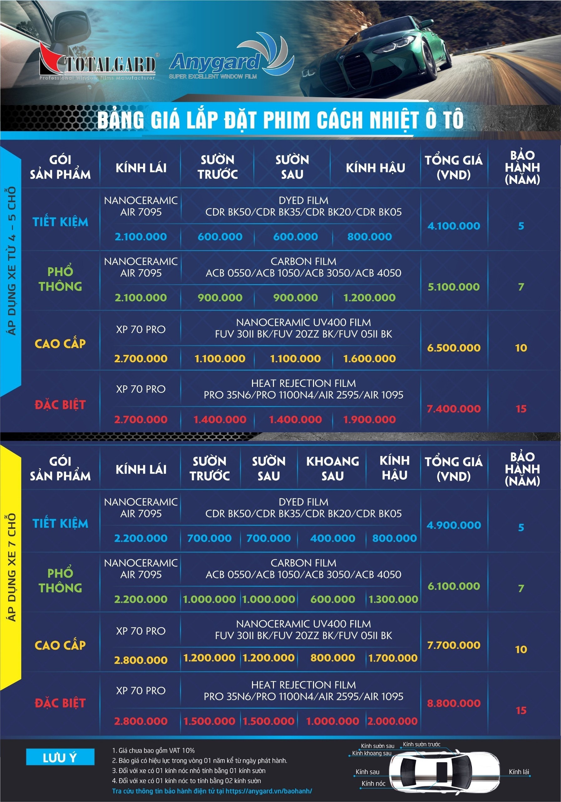 Bảng Báo giá phim cách nhiệt anygard chính hãng Hàn quốc