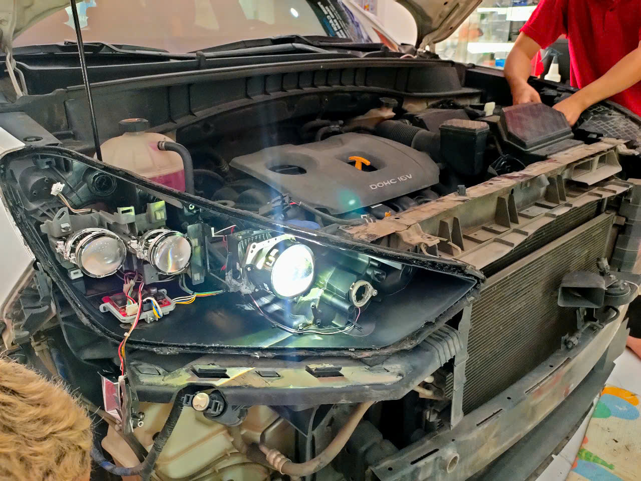 2. Tháo rời cụm đèn pha: Cụm đèn pha sẽ được tháo ra khỏi xe một cách cẩn thận, sử dụng dụng cụ chuyên dụng.